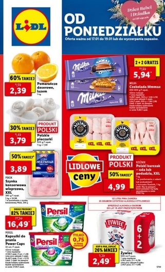 {loadposition linkLidl1} 'Od poniedziałku' - nowa gazetka promocyjna sieci sklepów Lidl. Polecane promocje z gazetki sklepów Lidl: Czekolada Milka 4x300 g - 23,76 zł. Pomarańcze deserowe 1 kg - 2,39 zł. Polskie pieczarki 500 g - 3,79 zł. …