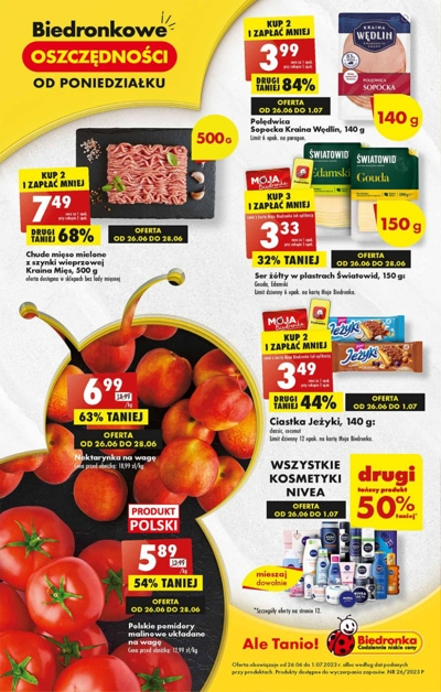 {loadposition linkBiedronka2} 'Ale tydzień!' - nowa gazetka promocyjna sieci sklepów Biedronka. Polecane promocje z gazetki sieci Biedronka: Polskie pomidory malinowe układane 1 kg - 7,99 zł*. Schab wieprzowy bez kości pakowany próżniowo Kraina Mięs 1 kg - 10,99 zł**.…