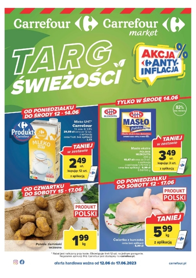{loadposition linkCarrefour} 'Targ świeżości. Akcja anty-inflacja' - nowa gazetka promocyjna sieci marketów Carrefour. Polecane promocje z gazetki Carrefour: Mleko UHT Carrefour 1 L - 2,49 zł*. Masło Ekstra Polskie Mlekovita 200 g - 3,49 zł**. Polskie ziemniaki wczesne 1…
