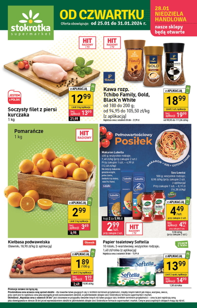 'Od czwartku' - nowa gazetka promocyjna sieci sklepów Stokrotka. Polecane promocje z gazetki Stokrotka: Soczysty filet z piersi kurczaka 1 kg - 12,99 zł*. Kawa rozpuszczalna Tchibo 180-200 g - 18,99 zł**. Pomarańcze 1 kg - 2,99 zł***. …