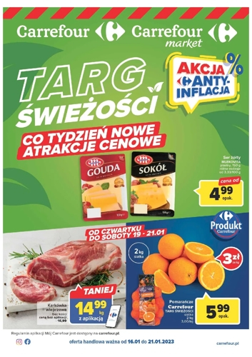 {loadposition linkCarrefour} 'Targ świeżości. Co tydzień nowe atrakcje cenowe' - nowa gazetka promocyjna sieci marketów Carrefour. Polecane promocje z gazetki Carrefour: Ser żółty Mlekovita 150 g - 4,99 zł. Karkówka wieprzowa bez kości 1 kg - 14,99 zł*. Pomarańcze…