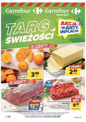 {loadposition linkCarrefour} 'Targ świeżości. Co tydzień nowe atrakcje cenowe' - nowa gazetka promocyjna sieci marketów Carrefour. Polecane promocje z gazetki Carrefour: Pomarańcze 1 kg - 3,99 zł*. Ser żółty Gouda 100 g - 2,59 zł*. Schab wieprzowy 1 kg…