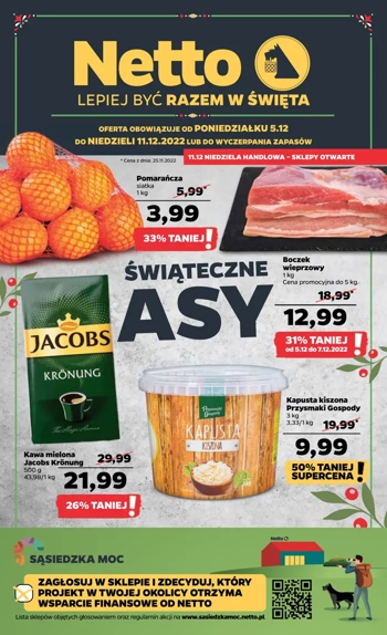 {loadposition linkNetto3} 'Dyskontowe asy' - nowa gazetka promocyjna sieci sklepów Netto. Polecane promocje z gazetki Netto: Pomarańcza 1 kg - 3,99 zł. Łopatka wieprzowa 1 kg - 12,99 zł*. Mleko UHT Łaciate 1 L - 3,33 zł**. *…
