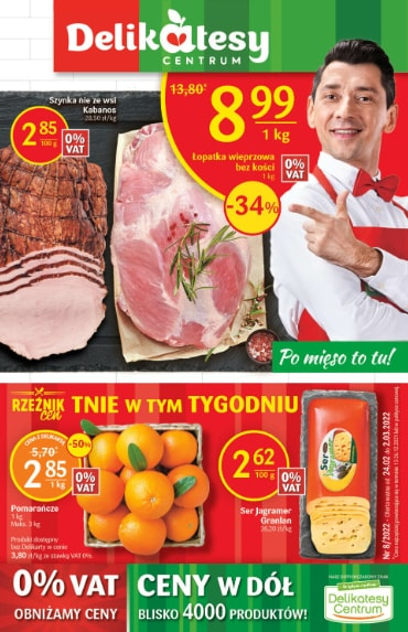 {loadposition linkDelikatesyCentrum} '0% VAT, ceny w dół. Blisko 4000 produktów' - nowa gazetka promocyjna Delikatesów Centrum. Polecane promocje z gazetki Delikatesów Centrum: Szynka nie ze wsi Kabanos 100 g - 2,85 zł. Łopatka wieprzowa bez kości 1 kg -…