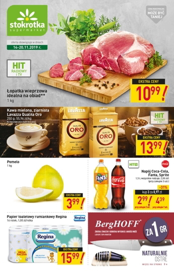 Nowa gazetka promocyjna sieci sklepów Stokrotka. Polecane promocje z gazetki Stokrotka: Łopatka wieprzowa idealna na obiad 1 kg - 10,99 zł. Pomelo 1 kg - 3,99 zł. Papier toaletowy rumiankowy Regina 16 rolek - 15,99 zł.…