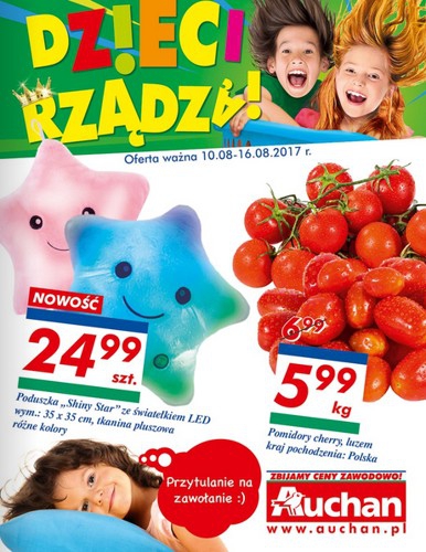 {loadposition linkAuchan} Nowa gazetka promocyjna Auchan - "Dzieci rządzą" część 2. Polecane promocje z gazetki Auchan: Poduszka Shiny Star ze światełkiem LED - 24,99 zł. Pomidory cherry 1 kg - 5,99 zł. Kaszanka Morliny 2x480 g…