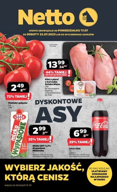 {loadposition linkNetto} 'Dyskontowe asy' - nowa gazetka promocyjna sieci sklepów Netto. Polecane promocje z gazetki Netto: Pomidory gałązka 1 kg - 2,49 zł. Filet z piersi kurczaka Sztuka Mięsa 1 kg - 13,99 zł*. Mleko Wypasione Mlekovita 1 L…