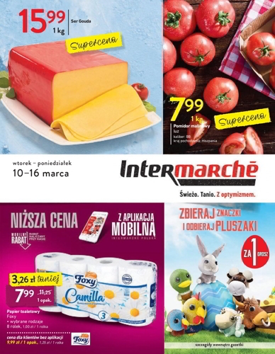 {loadposition linkIntermarche} Nowa gazetka promocyjna sieci sklepów Intermarche Polecane promocje z gazetki Intermarche: Ser Gouda 1 kg - 15,99 zł. Pomidory malinowe 1 kg - 7,99 zł. Papier toaletowy Foxy 8 rolek - 7,99 zł*. * -…