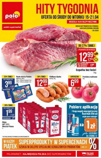 'Hity tygodnia' - nowa gazetka promocyjna sieci sklepów Polo Market. Polecane promocje z gazetki Polo Market: Łopatka bez kości 1 kg - 12,99 zł*. Kiełbasa śląska Morliny 1 kg - 12,99 zł. Pomidory malinowe 1 kg…