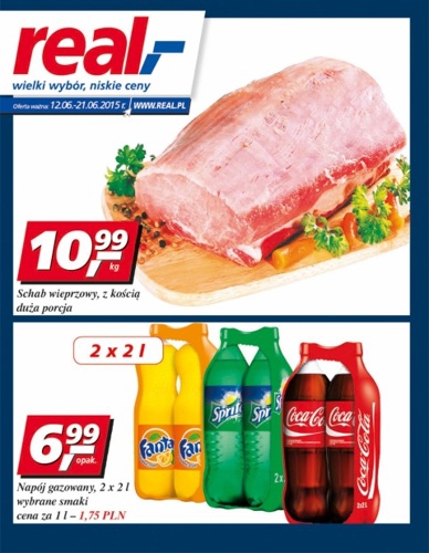 Nowa gazetka promocyjna sieci handlowej Real. Polecane promocje z gazetki Real: Schab wieprzowy z kością 1 kg - 10,99 zł. Pomidory malinowe 1 kg - 6,99 zł. Borówki 250 g - 6,99 zł. Oferta ważna od 12.06…
