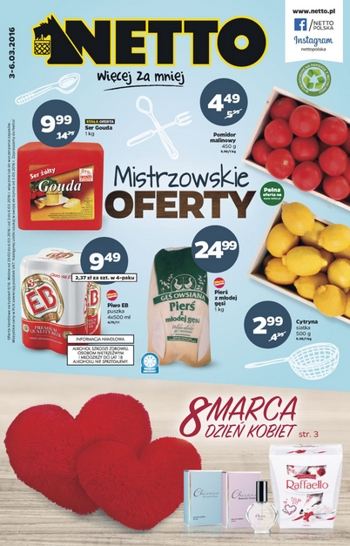 {loadposition linkNetto} Nowa gazetka promocyjna Netto - "Mistrzowskie oferty". Polecane promocje z gazetki Netto: Ser Gouda 1 kg - 9,99 zł. Pomidory malinowe 450 g - 4,49 zł. Pierś z młodej gęsi 1 kg - 24,99 zł. …