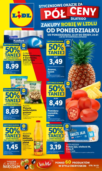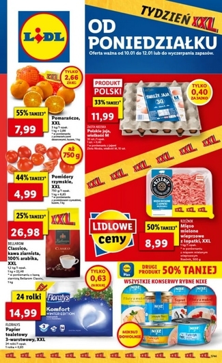{loadposition linkLidl1} 'Od poniedziałku' - nowa gazetka promocyjna sieci sklepów Lidl. Polecane promocje z gazetki sklepów Lidl: Ananans 1 kg - 3,49 zł*. Pomidory rzymskie 1 kg - 8,99 zł*. Świeże jaja Złota Nioska klasa M 10 sztuk -…