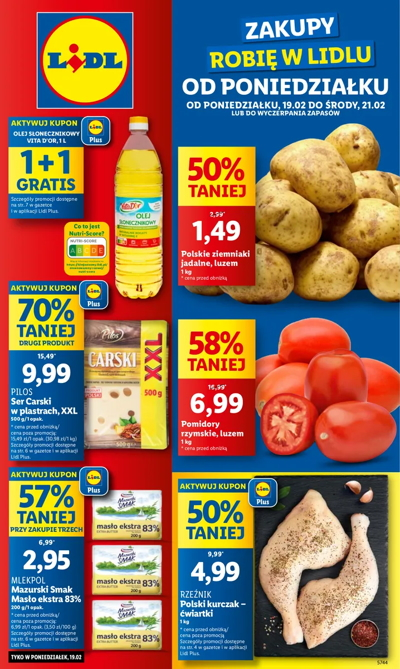 {loadposition linkLidl1} 'Od poniedziałku' - nowa gazetka promocyjna sieci sklepów Lidl. Polecane promocje z gazetki sklepów Lidl: Polskie ziemniaki jadalne 1 kg - 1,49 zł. Pomidory rzymskie 1 kg - 6,99 zł. Polski kurczak ćwiartka Rzeźnik 1 kg -…