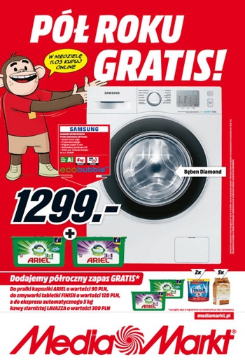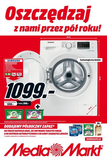 {loadposition linkMediaMarkt} 'Pół roku gratis!' - nowa gazetka promocyjna Media Markt. Polecane promocje z gazetki Media Markt: Pralka SAMSUNG WF60F4EEW2W/EO - 1299 zł. Pralka ładowana od góry CANDY CST G370D-S - 1249 zł. Zmywarka BOSCH SMV25EX00E - 1599 zł.…