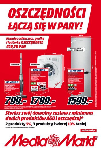 {loadposition linkMediaMarkt} Nowa gazetka promocyjna Media Markt - "Oszczędności łączą się w pary!". Polecane promocje z gazetki Media Markt: Odkurzacz SAMSUNG VS60K6080KC - 799 zł. Pralka SAMSUNG WW70k5213WW - 1799 zł. Lodówka SAMSUNG RB33J3030SA - 1599 zł. …