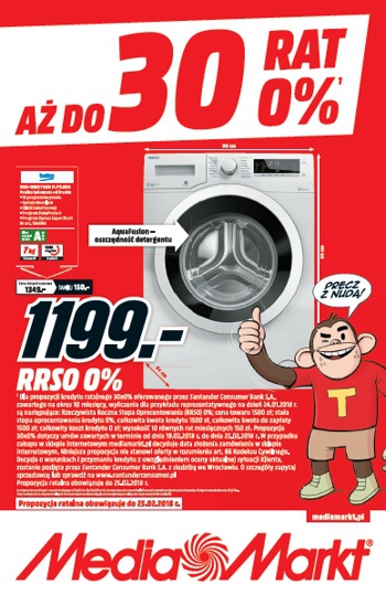 {loadposition linkMediaMarkt} 'Aż do 30 rat 0%' - nowa gazetka promocyjna Media Markt. Polecane promocje z gazetki Media Markt: Pralka SAMSUNG WW70J5346MW/EO - 1299 zł. Zmywarka do zabudowy SIEMENS SR615X03CE - 1249 zł. Lodówka SIEMENS KG49NAI31 - 3349 zł.…