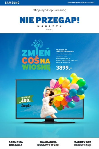 Nowy magazyn Oficjalnego Sklepu Samsung - Wydanie 8. Polecane promocje z magazynu Samsung: Telewizor 4K LED 48' SAMSUNG UE48JU6400 - 3899 zł. Pralka SAMSUNG WW80H7410EW Crystal Blue - 3199 zł. Odkurzacz SAMSUNG VC08F60JUVB - 999 zł. Oferta…