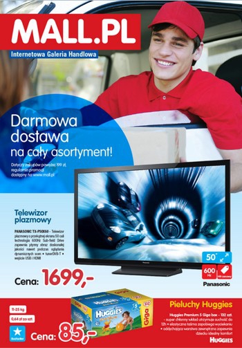 Aktualna gazetka promocyjna Internetowej Galerii Handlowej Mall.pl. Polecane promocje z gazetki Mall.pl: Telewizor plazmowy 50" PANSONIC TX-P50X60 - 1699 zł. Pieluchy Huggies Premium 5 Giga box 132 sztuki - 85 zł. Pralka AMICA AWSH 1000 - 999 zł.…