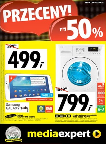 {loadposition linkMediaExpert} Nowa gazetka promocyjna Media Expert - "Przeceny do 50%". Polecane promocje z gazetki Media Expert: Tablet SAMSUNG Galaxy TAB III Lite - 499 zł. Pralka SLIM BEKO WMB 51032 PL PTY - 799 zł. Notebook ACER ASPIRE…