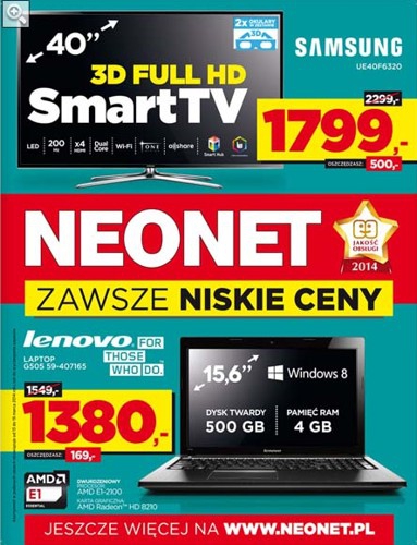 Najnowsza gazetka promocyjna RTV EURO AGD - "Odlotowa promocja". Polecane promocje z gazetki RTV EURO AGD: Telewizor LED 3D 40" SAMSUNG UE40F6770 - 2590 zł. Laptop Sony VAIO SVF1521B1E W8 - 1990 zł. Pralka Indesit IWSC51051C - 799…