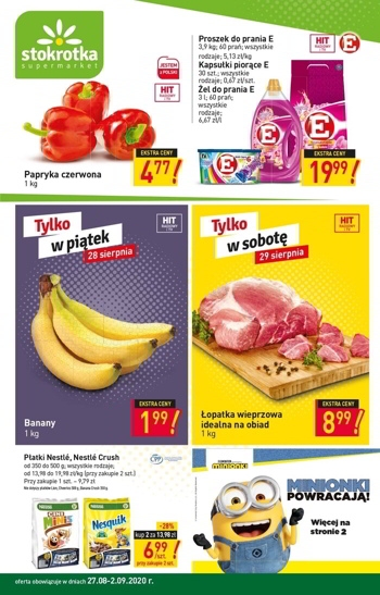 Nowa gazetka promocyjna sieci sklepów Stokrotka. Polecane promocje z gazetki Stokrotka: Papryka czerwona 1 kg - 4,77 zł. Proszek do prania E 3,9 kg - 19,99 zł. Dynia Hokkaido 1 kg - 2,99 zł. Oferta…