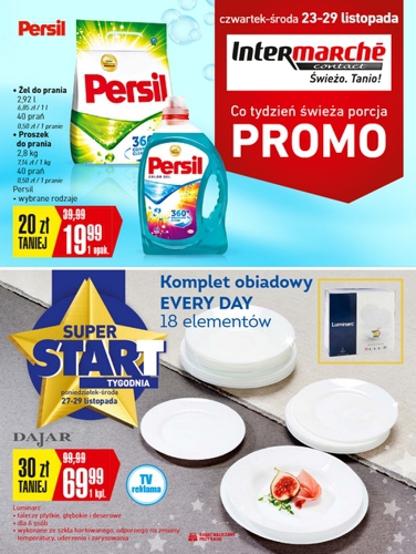 {loadposition linkIntermarche} Nowa gazetka promocyjna sieci sklepów Intermarche - "Co tydzień świeża porcja promo". Polecane promocje z gazetki Intermarche: Komplet obiadowy Every Day 18 elementów - 69,99 zł. Żel lub proszek do prania Persil - 19,99 zł. …