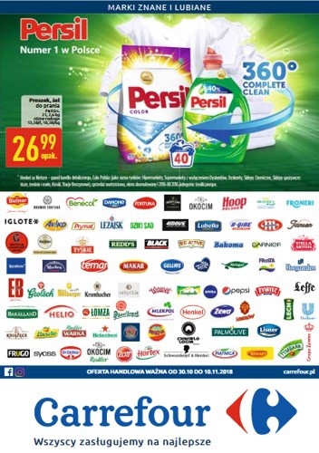 {loadposition linkCarrefour} 'Marki znane i lubiane' - nowa gazetka promocyjna sieci marketów Carrefour. Polecane promocje z gazetki Carrefour: Proszek lub żel do prania Persil 2 L lub 2,6 kg - 26,99 zł. Żurawina Bakalland 150 g - 7,99 zł.…