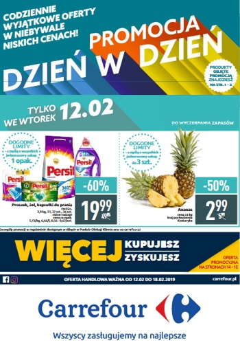 {loadposition linkCarrefour} 'Promocja dzień w dzień. Codziennie wyjątkowe oferty w niebywale niskich cenach!' - nowa gazetka promocyjna sieci marketów Carrefour. Polecane promocje z gazetki Carrefour: Proszek, żel lub kapsułki do prania Persil różne rodzaje - 19,99 zł. Ananas…