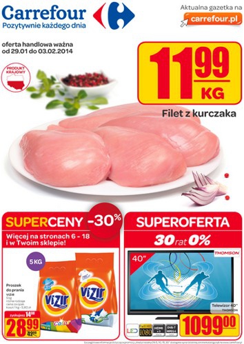 {loadposition linkCarrefour} Nowa gazetka promocyjna sieci handlowej Carrefour. Polecane promocje z gazetki Carrefour: Filet z kurczaka 1 kg - 11,99 zł. Proszek do prania Vizir 5 kg - 28,99 zł. Telewizor LED 40" THOMSON - 1099 zł. Oferta…