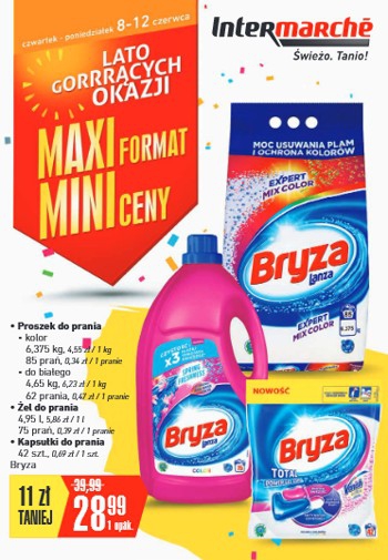 {loadposition linkIntermarche} Nowa gazetka promocyjna sieci handlowej Intermarche - "Lato gorrrących okazji - maxi format, mini ceny". Polecane promocje z gazetki Intermarche: Proszek do prania Bryza 6,375 kg - 28,99 zł. Mleko Łaciate 1,5 L - 3,49 zł.…