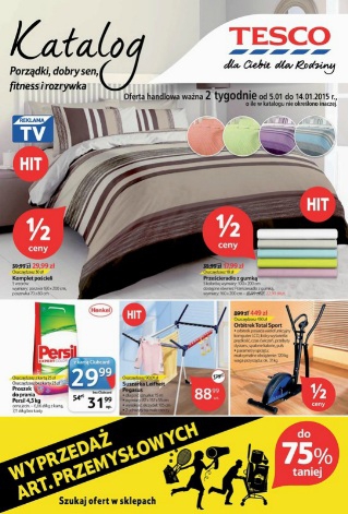 Nowy katalog Tesco - "Porządki, dobry sen, fitness i rozrywka". Polecane promocje z katalogu Tesco: Komplet pościeli - 29,99 zł. Prześcieradło z gumką - 17,99 zł. Proszek do prania Persil 4,5 kg - 31,99 zł. Oferta ważna…