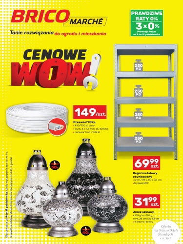 {loadposition linkBricomarche} 'Cenowe WOW!' - nowa gazetka promocyjna sieci sklepów Bricomarche. Polecane promocje z gazetki Bricomarche: Przewód YDYp 100 mb. - 149 zł. Regał metalowy ocynkowany - 69,99 zł. Znicz szklany 150 g - 31,99 zł. …
