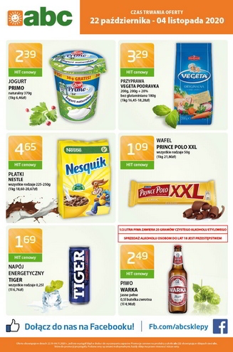 {loadposition linkABC} Nowa gazetka promocyjna sieci sklepów ABC. Polecane promocje z gazetki ABC: Jogurt naturalny Zott Primo 370 g - 2,39 zł. Przyprawa Vegeta Podravka 220 g - 3,29 zł. Płatki Nestle 250 g - 4,65 zł. …