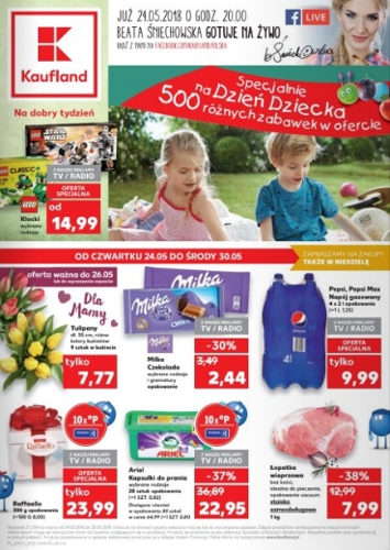 {loadposition linkKaufland} 'Specjalnie na Dzień Dziecka 500 różnych zabawek w ofercie' - nowa gazetka promocyjna sieci marketów Kaufland. Polecane promocje z gazetki Kaufland: Klocki LEGO - od 14,99 zł. Czekolada Milka wybrane rodzaje i gramatury - 2,44 zł.…