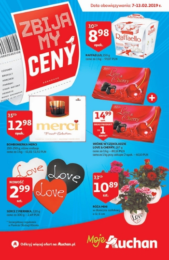 {loadposition linkAuchan} 'Zbijamy ceny' - nowa gazetka promocyjna sieci marketów Auchan. Polecane promocje z gazetki Auchan: Raffaello 150 g - 8,98 zł. Serce z piernika 120 g - 2,99 zł. Róża mini w ozdobnej doniczce - 10,89 zł. …