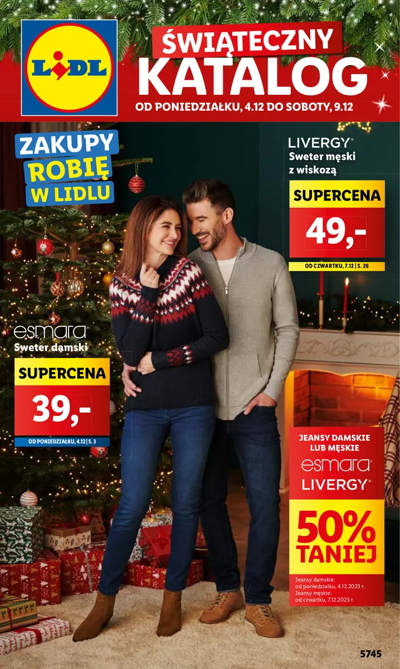 {loadposition linkLidl} 'Świąteczny katalog' - nowa gazetka promocyjna sieci sklepów Lidl. Polecane promocje z gazetki sklepów Lidl: Sweter damski Esmara - 39 zł*. Sweter męski z wiskozą Livergy - 49 zł**. Rajstopy damskie Gatta 1 para - 19,99 zł***.…