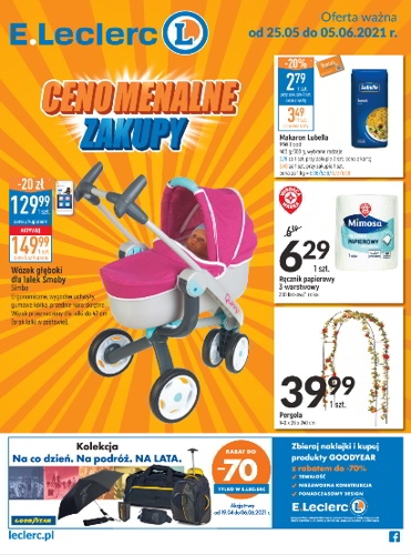 {loadposition linkEleclerc2} 'Cenomenalne zakupy' - nowa gazetka promocyjna sieci handlowej E.Leclerc. Polecane promocje z gazetki E.Leclerc: Wózek głęboki dla lalek Smoby Simba - 129,99 zł*. Ręcznik papierowy 3-warstwowy Mimosa - 6,29 zł. Pergola 140x26x240 cm - 39,99 zł. …