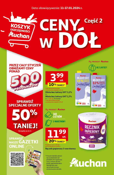 'Ceny w dół. Część 2' - nowa gazetka promocyjna sieci supermarketów Auchan. Polecane promocje z gazetki Auchan: Mleko bez laktozy Auchan 1 L - 3,99 zł*. Ręcznik papierowy Auchan 3-warstwowy - 11,99 zł. Kura rosołowa 1 kg - 7,99…