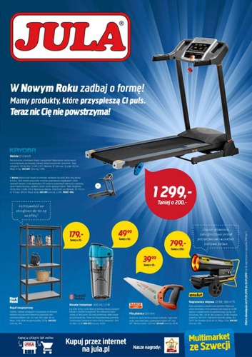 {loadposition linkJula} 'W Nowym Roku zadbaj o formę! Mamy produkty, które przyspieszą Ci puls. Teraz nic Cię nie powstrzyma!' - nowa gazetka promocyjna sieci handlowej Jula. Polecane promocje z gazetki Jula: Bieżnia Kayoba - 1299 zł. Regał magazynowy Hard…