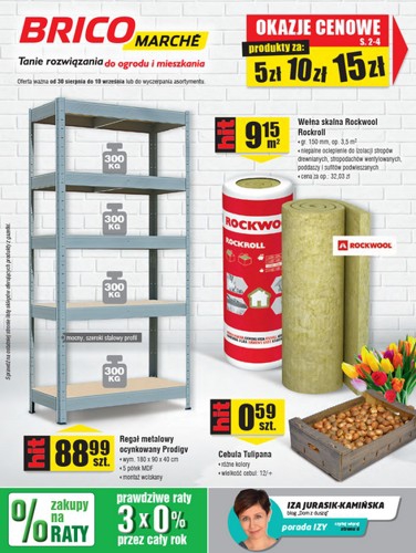 {loadposition linkBricomarche} Nowa gazetka promocyjna sieci sklepów Bricomarche - "Okazje cenowe". Polecane promocje z gazetki Bricomarche: Wełna skalna Rockwool m² - 9,15 zł. Regał metalowy ocynkowany Prodigv - 88,99 zł. Cebulka tulipana 1 sztuka - 0,59 zł. …