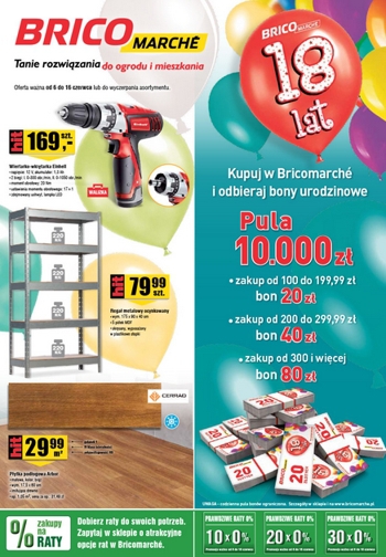{loadposition linkBricomarche} '18 lat Bricomarche' - nowa gazetka promocyjna sieci sklepów Bricomarche. Polecane promocje z gazetki Bricomarche: Wiertarko-wkrętarka Einhell - 169 zł. Regał metalowy ocynkowany 175x90x40 cm - 79,99 zł. Płytka podłogowa Arbor m² - 29,99 zł. …