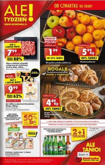 {loadposition linkBiedronka2} 'Ale tydzień!' - nowa gazetka promocyjna sieci sklepów Biedronka. Polecane promocje z gazetki sieci Biedronka: Jabłka 1 kg - 1,99 zł*. Mandarynki 1 kg - 5,99 zł*. Rogal Świętomarciński 185 g - 4,49 zł*. * -…