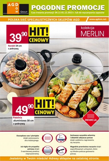 Nowa gazetka promocyjna AGDom - "Pogodne promocje". Polecane promocje z gazetki AGDom: Rondel 24 cm z pokrywą - 39,90 zł. Patelnia aluminiowa 30 cm z pokrywą - 49,90 zł. Zestaw obiadowy dla 6 osób 18 elementów - 75…