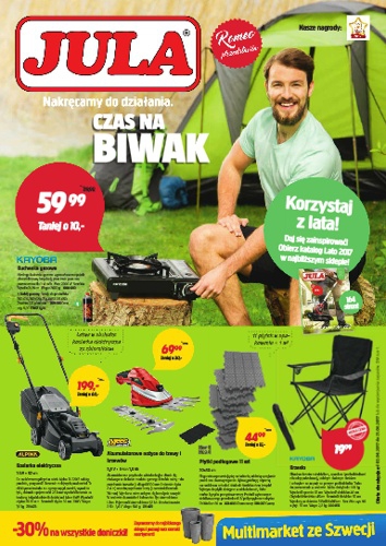 {loadposition linkJula} Nowa gazetka promocyjna sieci handlowej Jula - "Czas na biwak". Polecane promocje z gazetki Jula: Kuchenka gazowa Kayoba - 59,99 zł. Krzesło Kayoba - 19,99 zł. Rower elektryczny Kayoba - 2999 zł. Oferta…