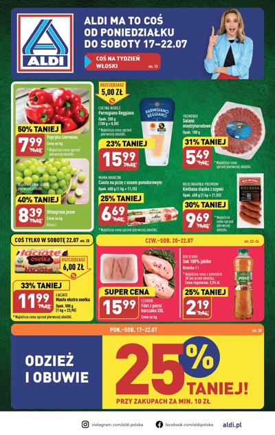 {loadposition linkAldi} 'Tydzień włoski' - nowa gazetka promocyjna sieci sklepów Aldi. Polecane promocje z gazetki Aldi: Parmigiano Reggiano Cucina Nobile 200 g - 15,99 zł. Salami międzynarodowe Tremondi 100 g - 5,49 zł. Ciasto na pizzę z sosem pomidorowym…