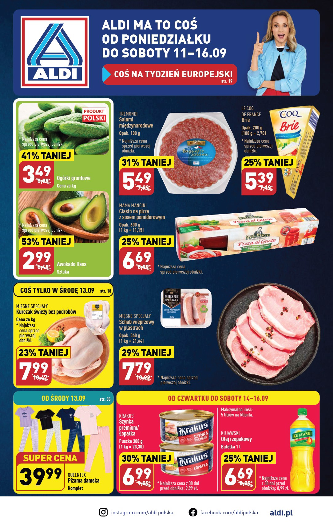 {loadposition linkAldi} 'Coś na tydzień europejski' - nowa gazetka promocyjna sieci sklepów Aldi. Polecane promocje z gazetki Aldi: Salami międzynarodowe Tremondi 100 g - 5,49 zł. Brie Le Coq De France 200 g - 5,39 zł. Ciasto na pizzę…