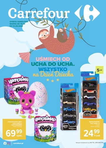 {loadposition linkCarrefour} 'Wszystko na Dzień Dziecka' - nowa gazetka promocyjna sieci marketów Carrefour. Polecane promocje z gazetki Carrefour: Interaktywne jajko Hatchimals Hatchibabies różne rodzaje - 69,99 zł. Samochodziki Hot Whells 5-pak - 24,99 zł. Piesek pluszowy Zaadoptuj Mnie różne…