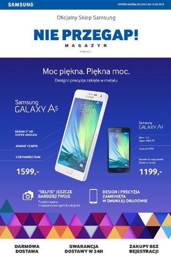 Nowy magazyn Oficjalnego Sklepu Samsung - Wydanie 1. Polecane promocje z magazynu Samsung: Smartfon Samsung Galaxy A5 - 1599 zł. Smartfon Samsung Galaxy A 3 - 1199 zł. Smartfon Samsung Galaxy Note 4 - 2999 zł. Oferta…