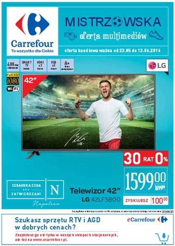 {loadposition linkCarrefour} Nowa gazetka promocyjna sieci handlowej Carrefour - "Mistrzowska oferta multimediów". Polecane promocje z gazetki Carrefour: Telewizor LED 42" LG 42LF5800 - 1599,99 zł. Telewizor LED 32" SAMSUNG UE32J4000 - 799 zł. Telewizor LED 48" SAMSUNG UE48JU6000 -…