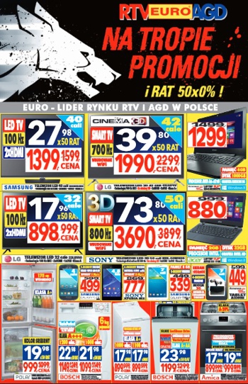 Nowa gazetka promocyjna RTV EURO AGD - "Na tropie promocji i rat 50x0%!". Polecane promocje z gazetki RTV EURO AGD: Telewizor LED 40" Samsung UE40H5000 - 1399 zł. Telewizor LED 3D 42" LG 42LB670V - 1990 zł. Laptop…